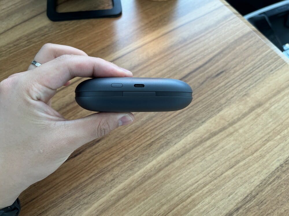 製品には収納とイヤホンの充電器を兼ねたチャージケースが付属する。Type-Cケーブルによる有線充電に対応。