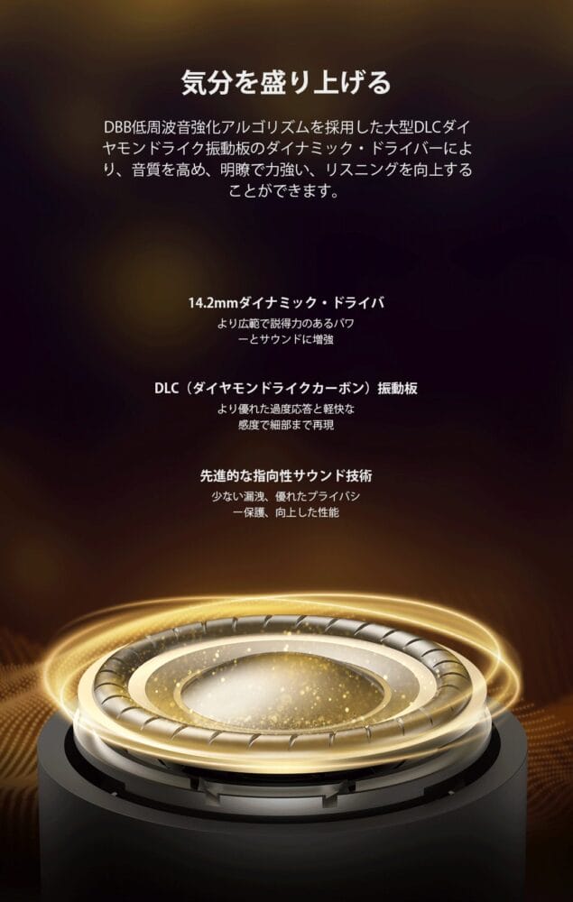 | 搭載ドライバー | 14.2 mm DLC ダイナミックドライバー |
