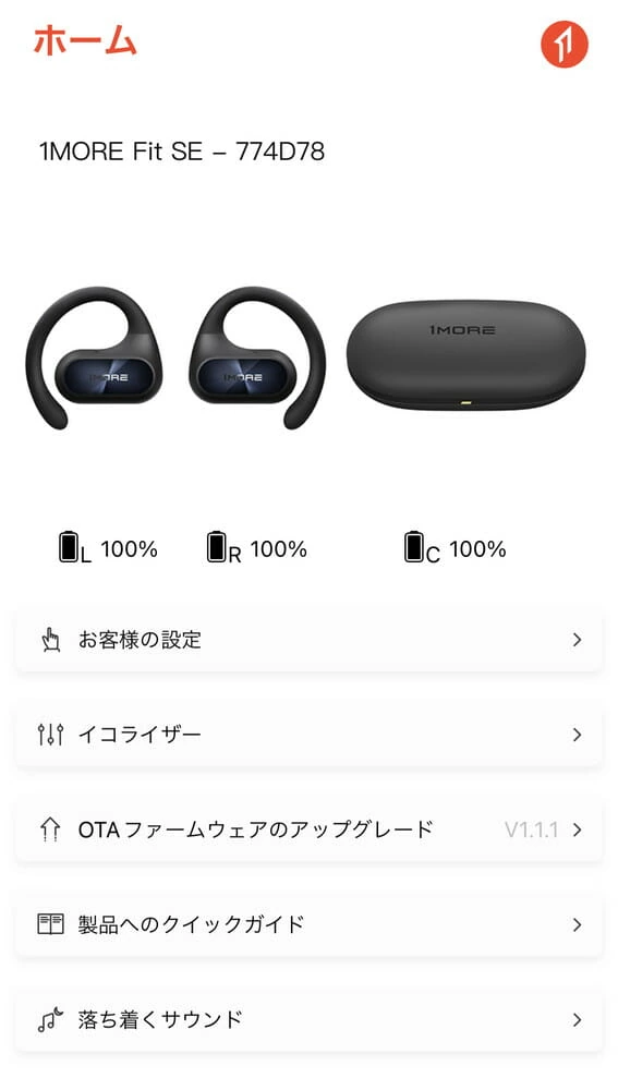 デバイス側で "1MORE Fit SE" が表示されるので、選択することで接続(ペアリング)が完了する。