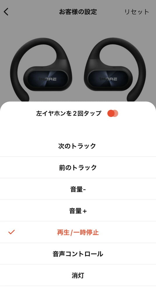 ▼イヤホンタップ時に利用できる機能を自由にカスタマイズすることが出来る。