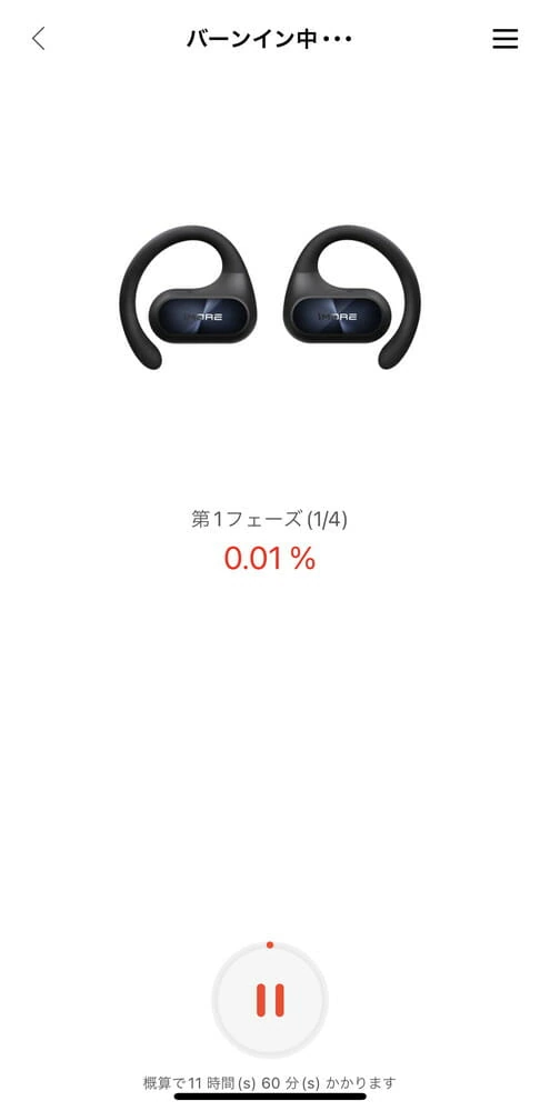 ▼初めて使用するイヤホンの部品をなじませて音質を良くする「スマートバーンイン」機能も用意。