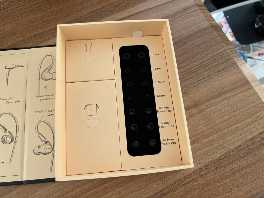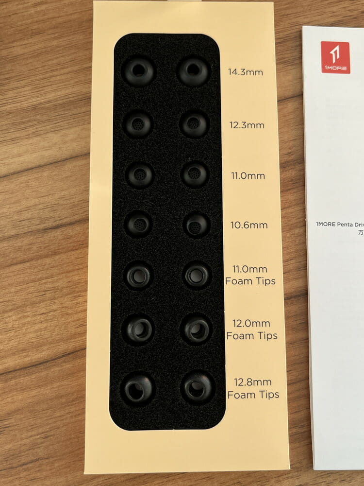 前述したように本製品には計8組(1組+予備7組)のイヤーチップが付属しており、ユーザーごとの耳穴の大きさに応じて最適なチップを選択できるようになっている。これにより雑音遮断や音質が向上し、本製品の音質を最大限に体験できる。