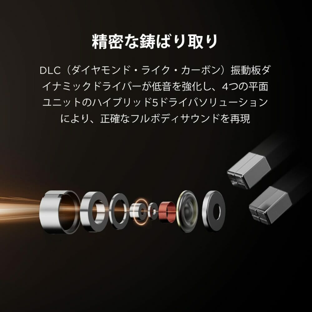 全く新しい5ユニット構造の有線イヤホンであり、長時間装着できる快適さと、臨場感あふれるサウンドを両立したモデルとなっている。