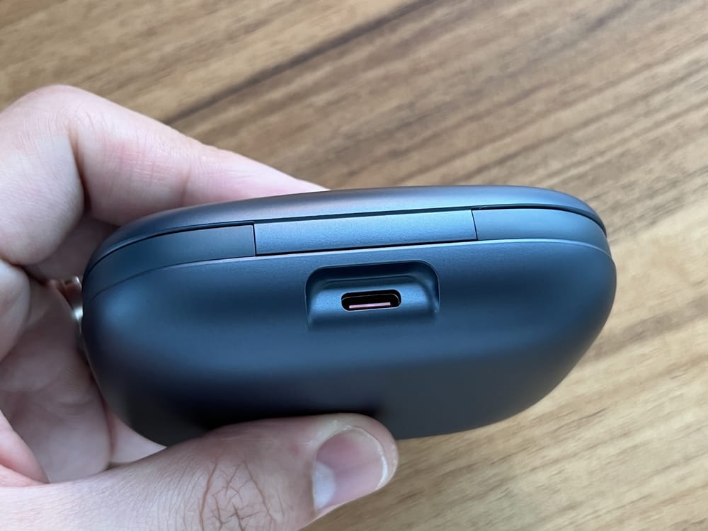 製品には収納とイヤホンの充電器を兼ねたチャージケースが付属する。Type-Cケーブルによる有線充電とQiワイヤレス充電に対応。