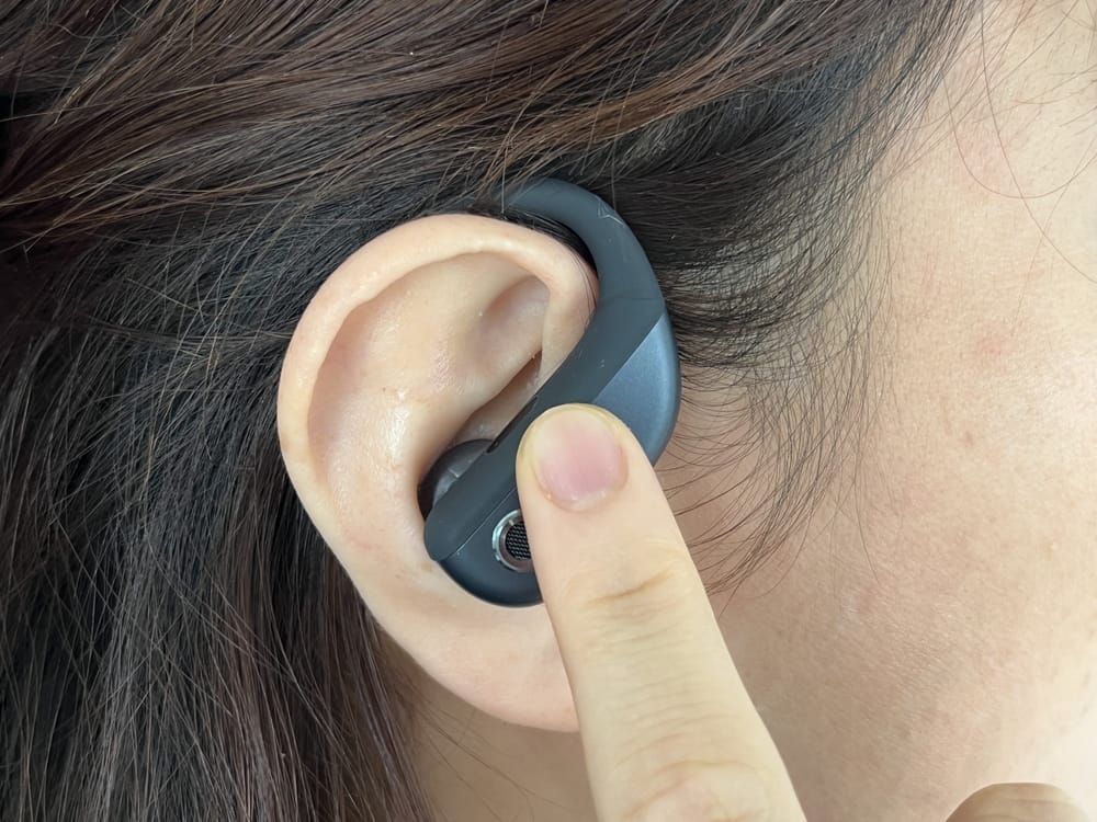 ただし、インナーイヤー型と比べると装着時の開放感が優れているぶん、安定感がやや欠けている感じがある。手が耳に当たると簡単にイヤホンが外れてしまうため、激しい動きを伴う運動などの際には、イヤホンが外れてしまうかもしれないので要注意だ。