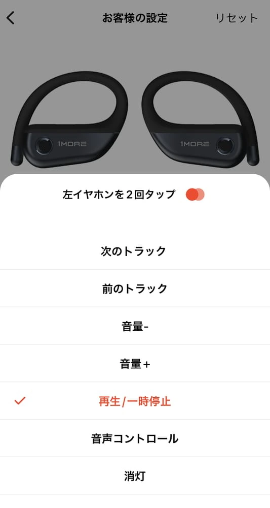 ▼イヤホンタップ時に利用できる機能を自由にカスタマイズすることが出来る。