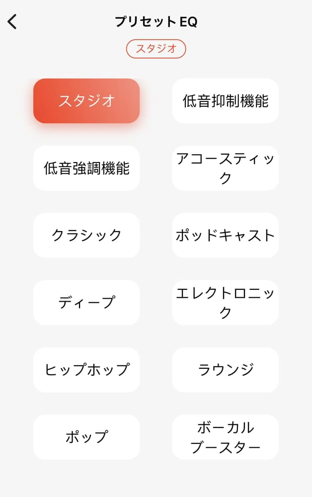 ▼カスタマイズEQ(イコライザー)からプリセットを選択して、音質を自分好みに調節できる。