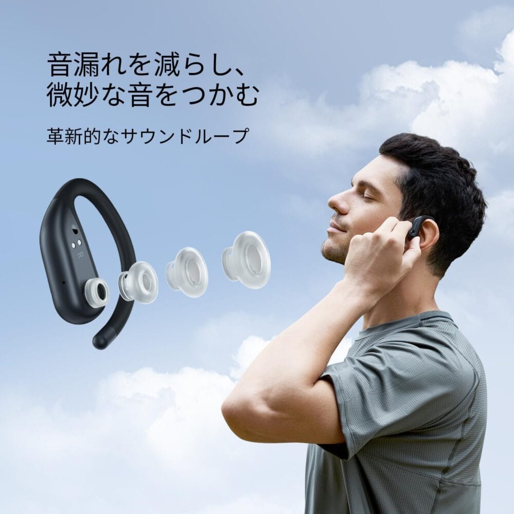耳穴を塞がないオープンイヤータイプのスポーツイヤホンであり、快適さとフィット感の完璧な融合を実現。圧倒的な快適性と、周囲の環境を把握できる認識性の高さを両立したモデルとなっている。