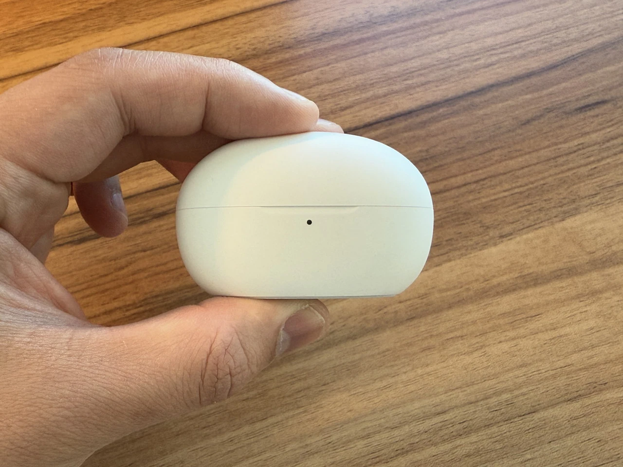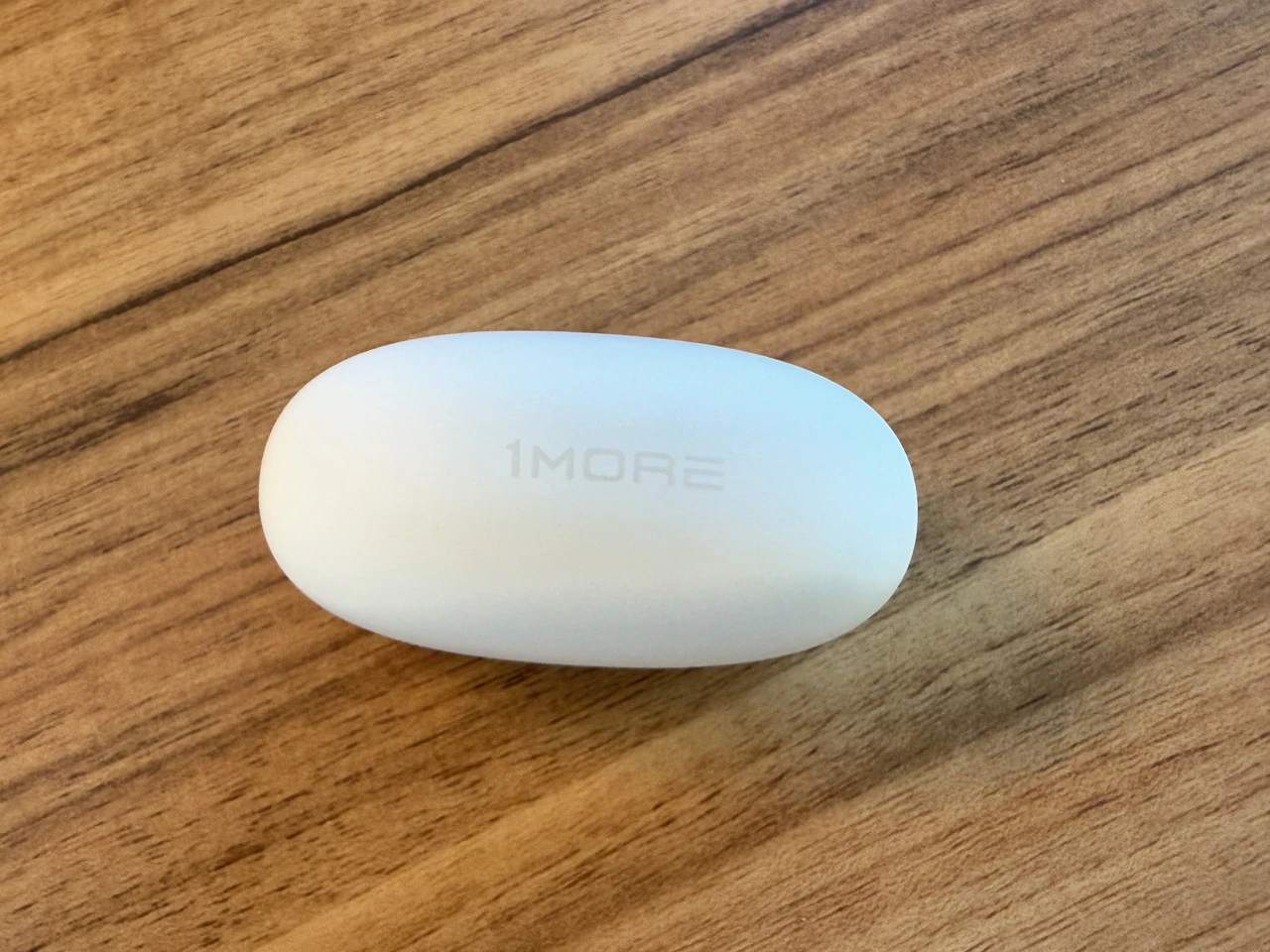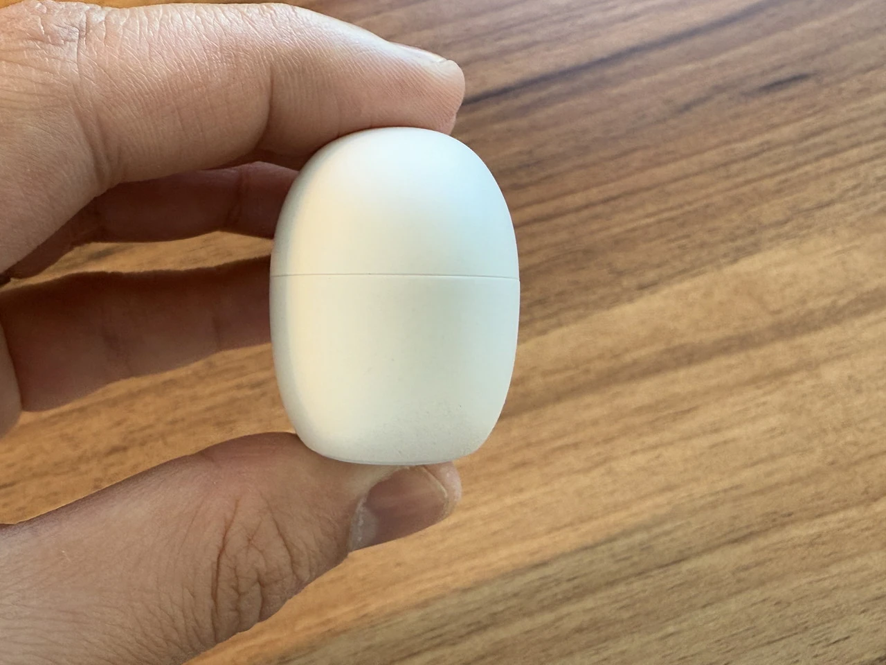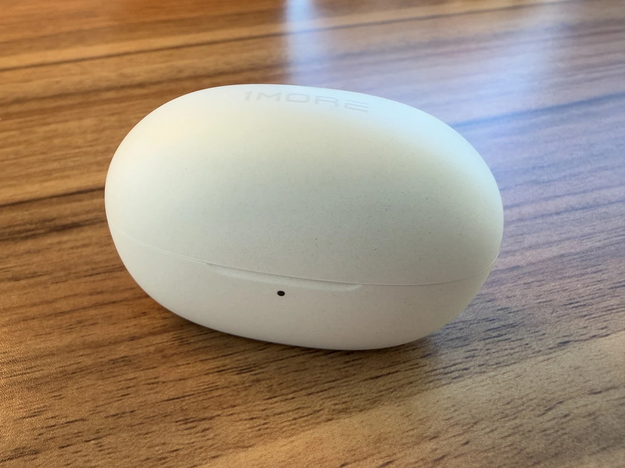 ▼チャージケースの外観。白一色の丸みを帯びたフォルム。