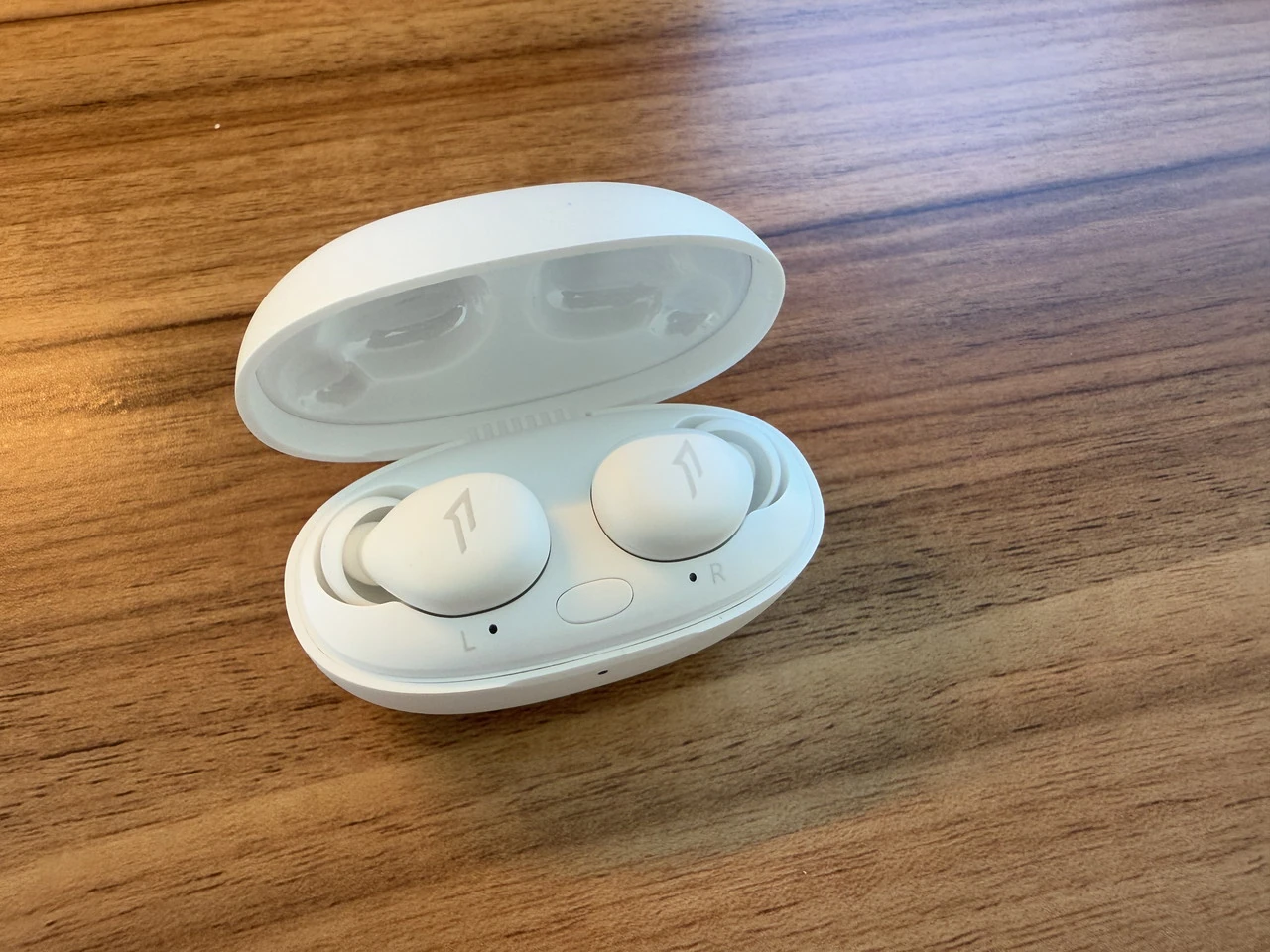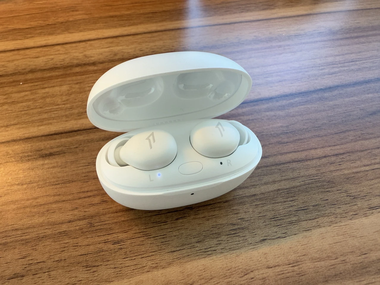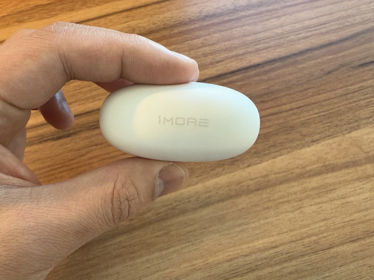 ▼チャージケースの外観。白一色の丸みを帯びたフォルム。