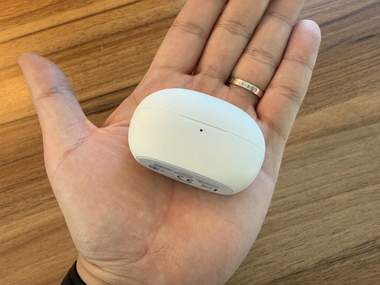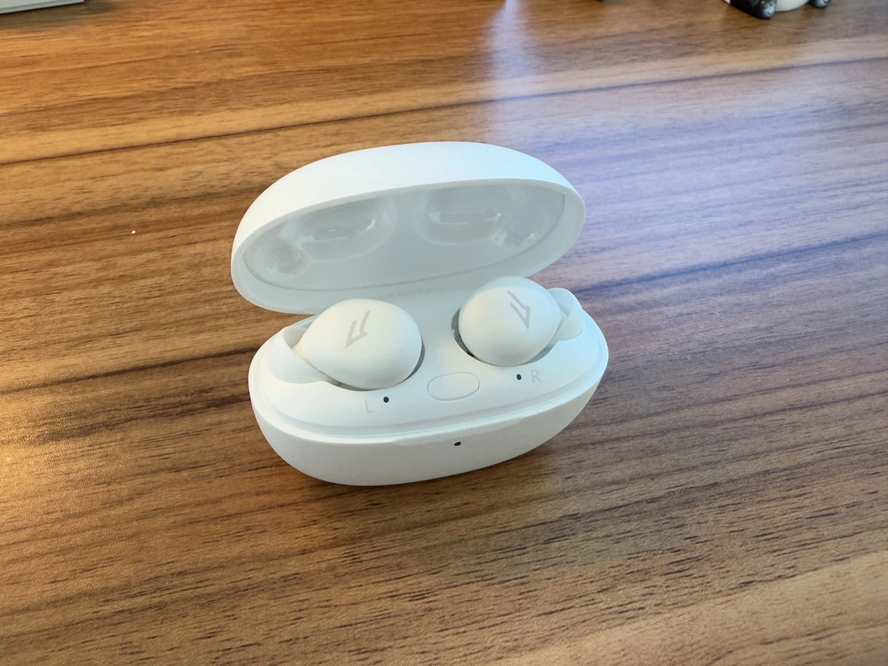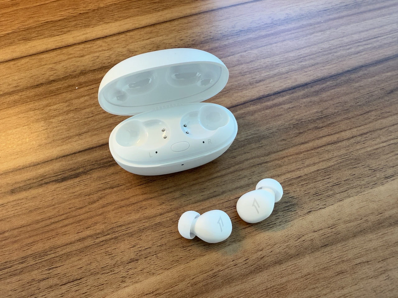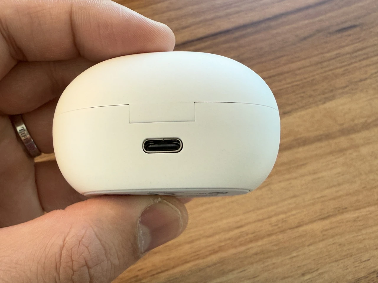 ▼チャージケースの外観。白一色の丸みを帯びたフォルム。