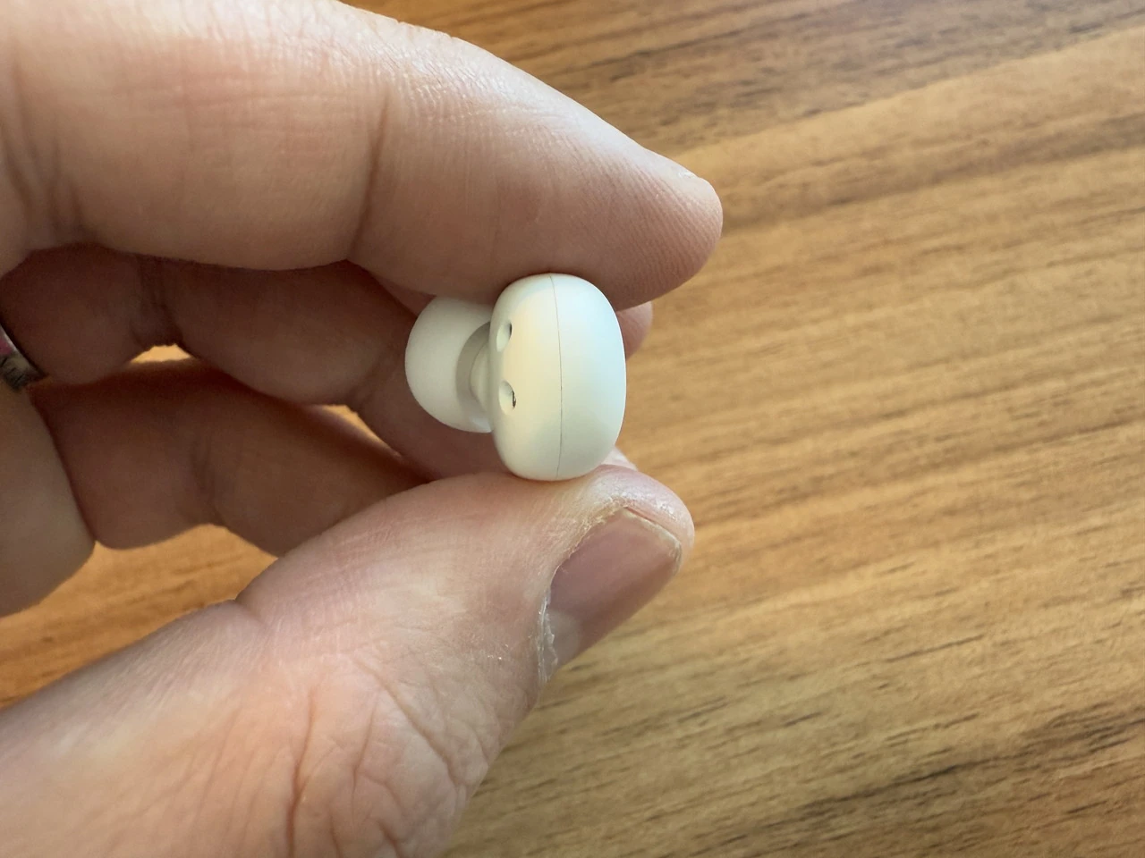 AirPodsなどの一般的なワイヤレスイヤホンよりも、はるかに小型かつ軽量で自然な装着感を実現している。