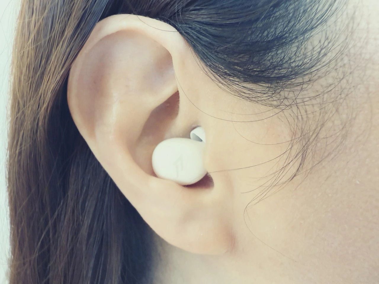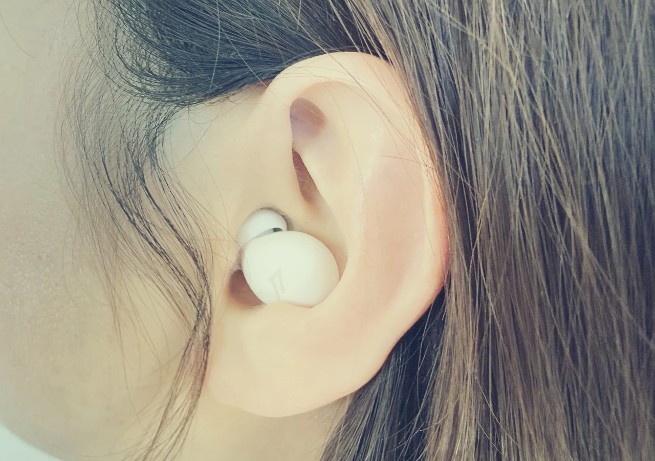 そしてイヤホン本体の厚みはわずか9.2mmほどのため、装着しても耳から大きくはみ出ることはない。このおかげで、着けたまま横になって寝ても、イヤホンが圧迫されて耳穴に不快感や痛みを感じることがほとんどない。