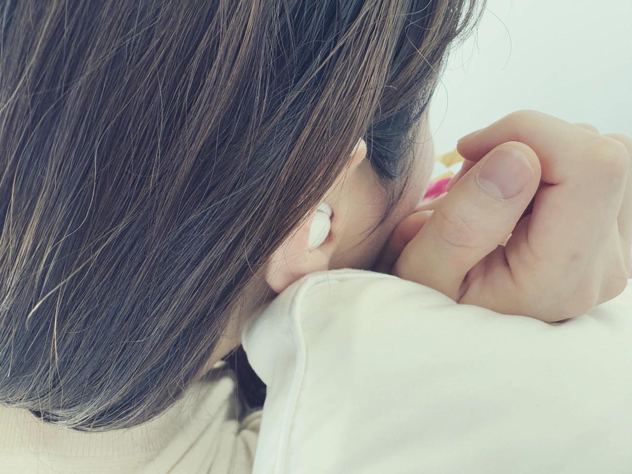 ▼耳穴にシッカリと固定されるため、寝返りをうってもイヤホンが外れてしまうことはなかった。