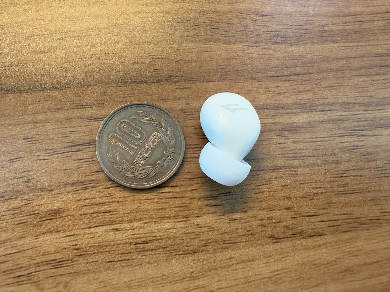 ▼24×9.2×14.2mm、片耳約2.7gの、非常に軽量かつコンパクトなデザイン。注意しないと紛失してしまうほど小さい。