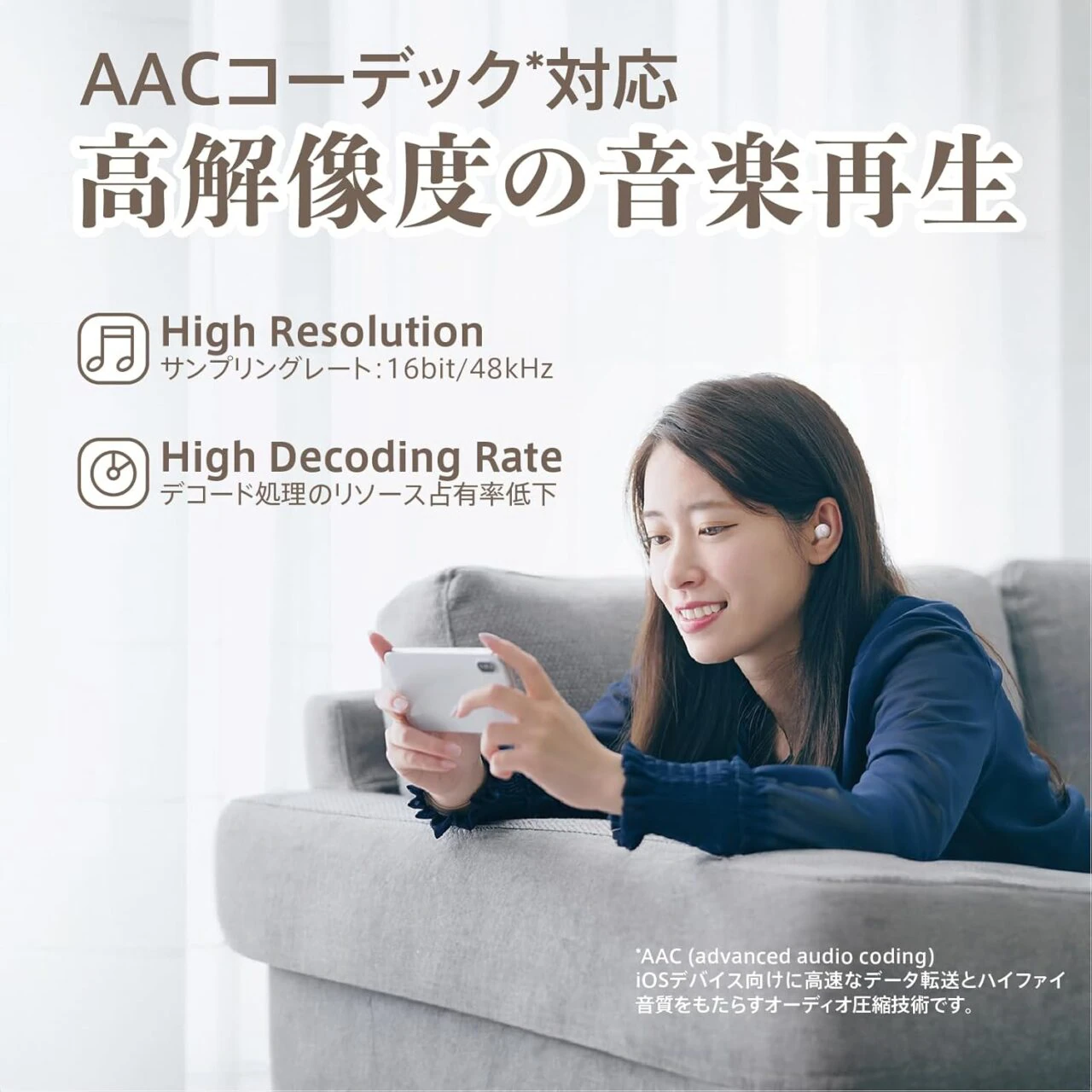 ▼AACコーデック対応により、高解像度の音楽再生が可能。