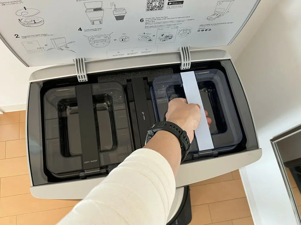 掃除完了後は「全機能ステーション」へと帰還。ロボット掃除機が収集したゴミを、ステーションに内蔵されたダストパックへと吸い上げる。またモップ洗浄機能も搭載しており、水拭き後の後処理まで全自動で行うことが可能となっています。