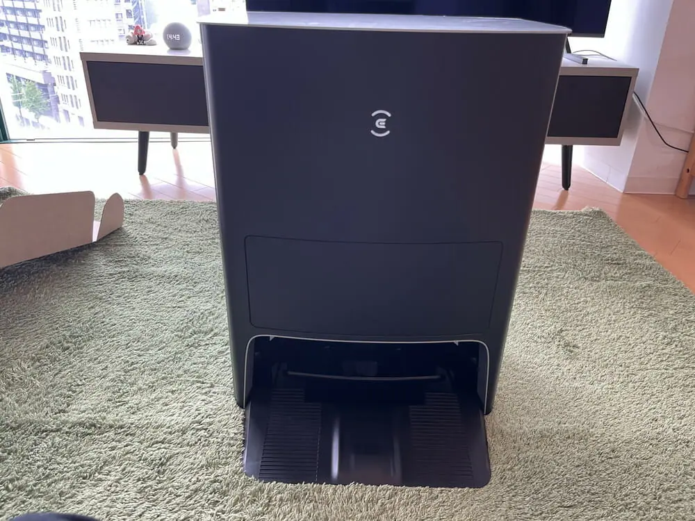 ステーションの高さは『Narwal Freo』と同程度ですが、手前にベースが伸びているぶん、設置場所を取ります。見た目は最も無骨で黒一色のため、デザインは人を選ぶかもしれません。 |