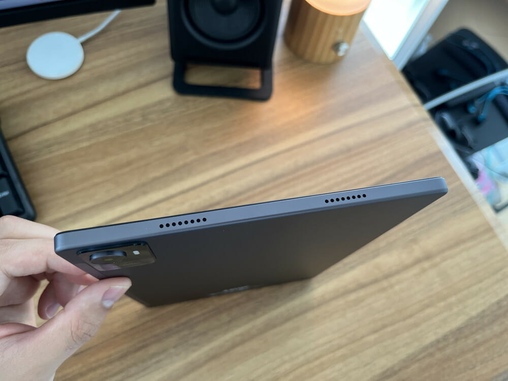 スピーカーは4基内蔵。メディア視聴目的でタブレットを探している方でも満足できるサウンド体験を提供する。