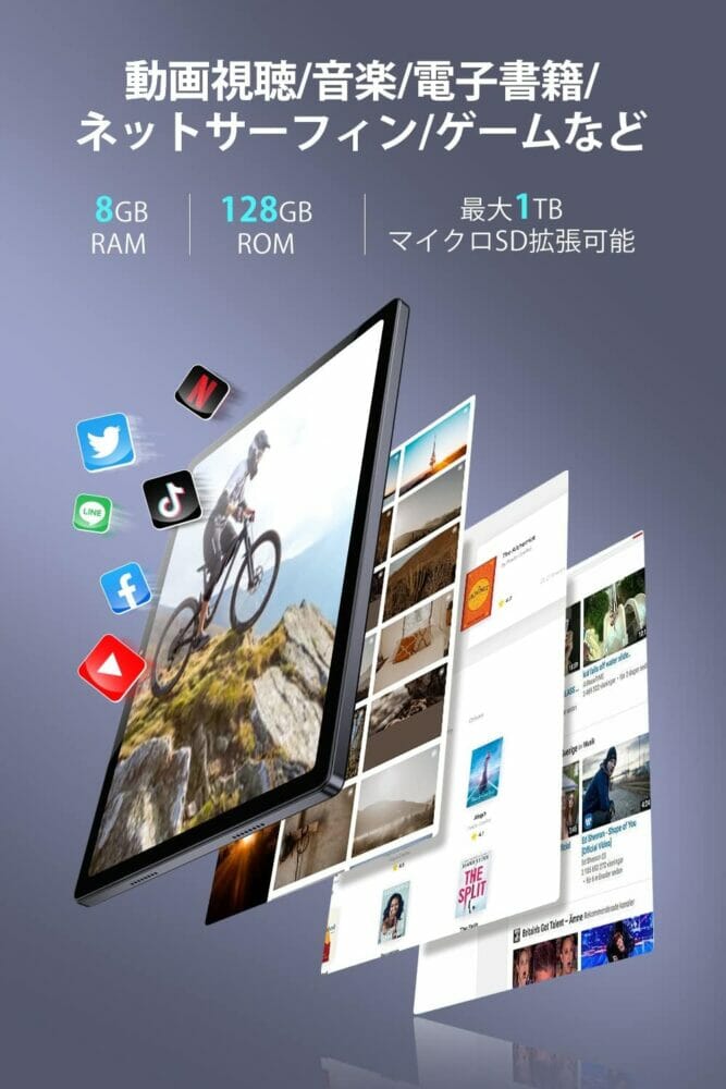 CPU(SoC)にはUNISOC T616 オクタコアプロセッサー、RAMは8GBを採用。一般的なタブレット用途は問題なくスムーズにこなせるだけの性能を擁している。