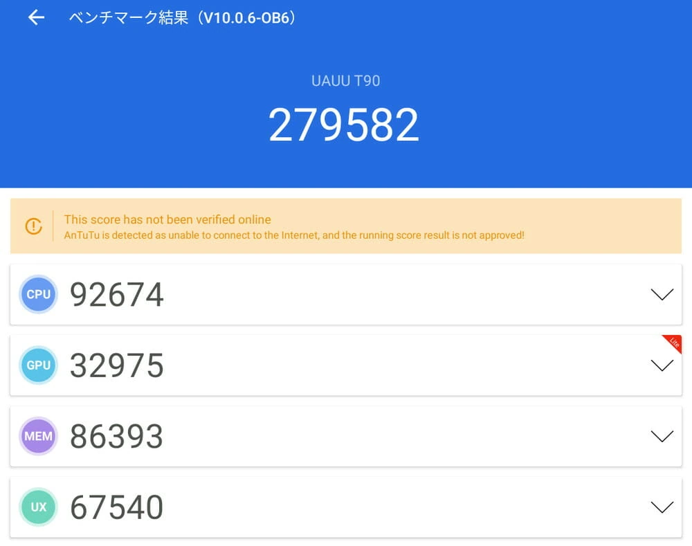 本機について、スマホ・タブレット端末の性能を測ることのできる『AnTuTuベンチマークテスト』を実施してみた。