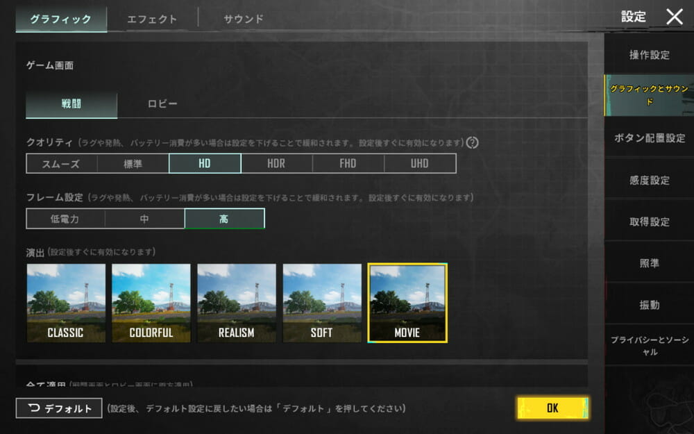 まずグラフィッククオリティに関しては『HD』まで選択出来た。