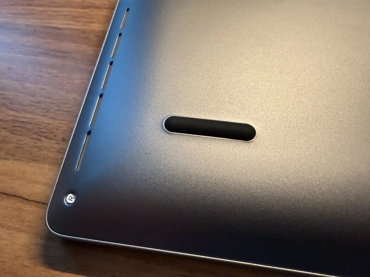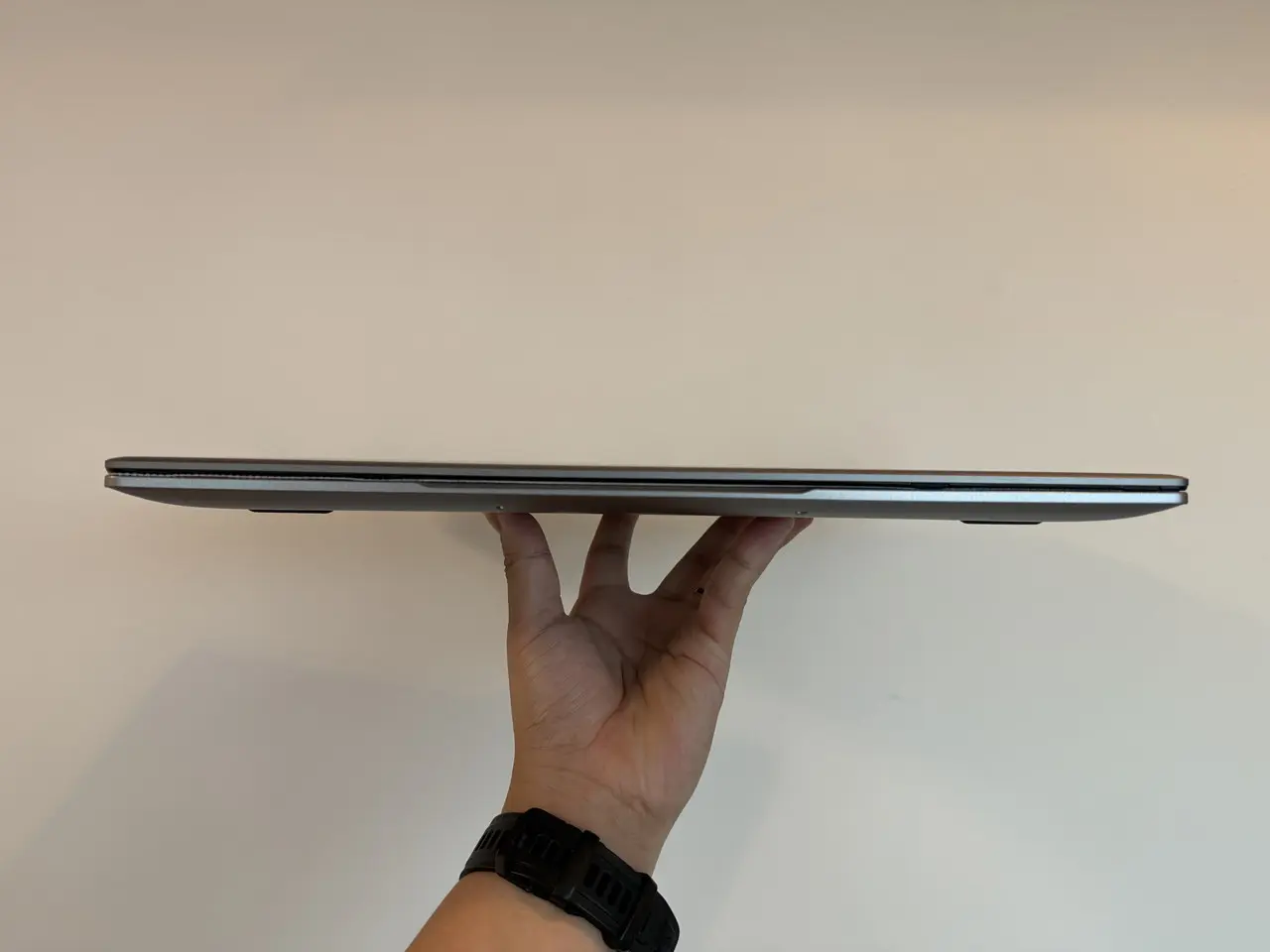 筐体サイズは35.1×22.9×1.68 cm。閉じた状態の最も薄い部分が1.68cmであり、底部の厚みを含めた実質的な厚みは約2cmほどある。