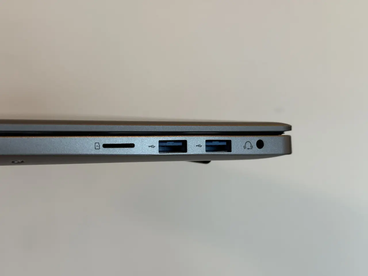 ▼右側面には、マイクロSDカードスロット、USB Type-A 3.2 Gen 1×2、3.5mmイヤホンジャックが用意。