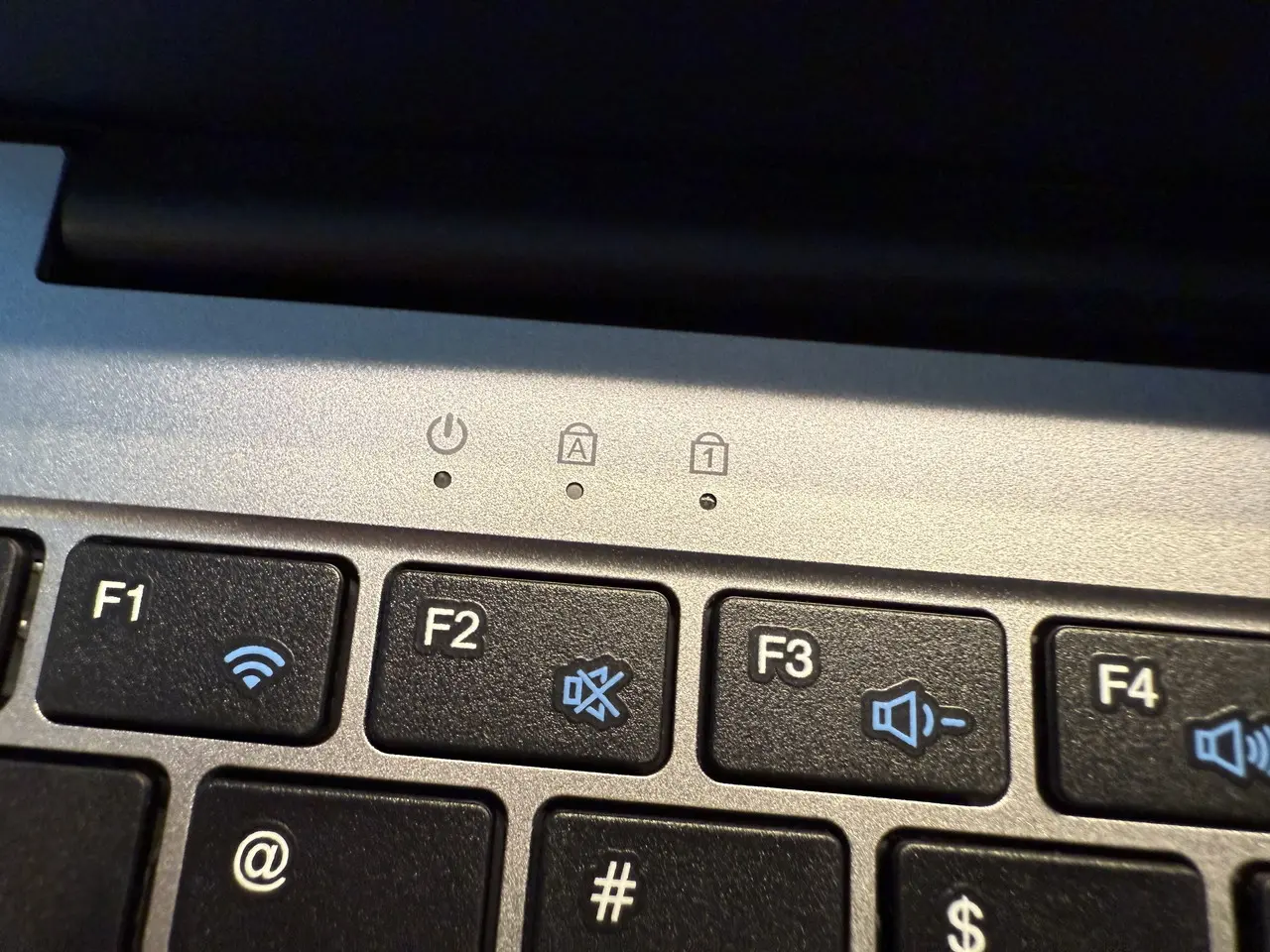▼キーボードとタッチパッドに加え、各種LEDインジケーターが用意。