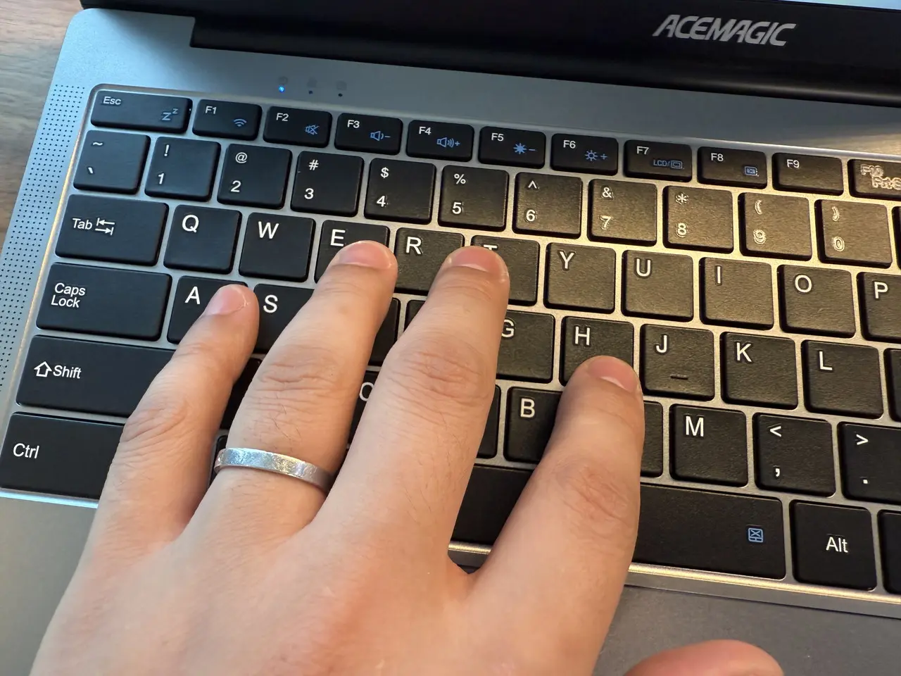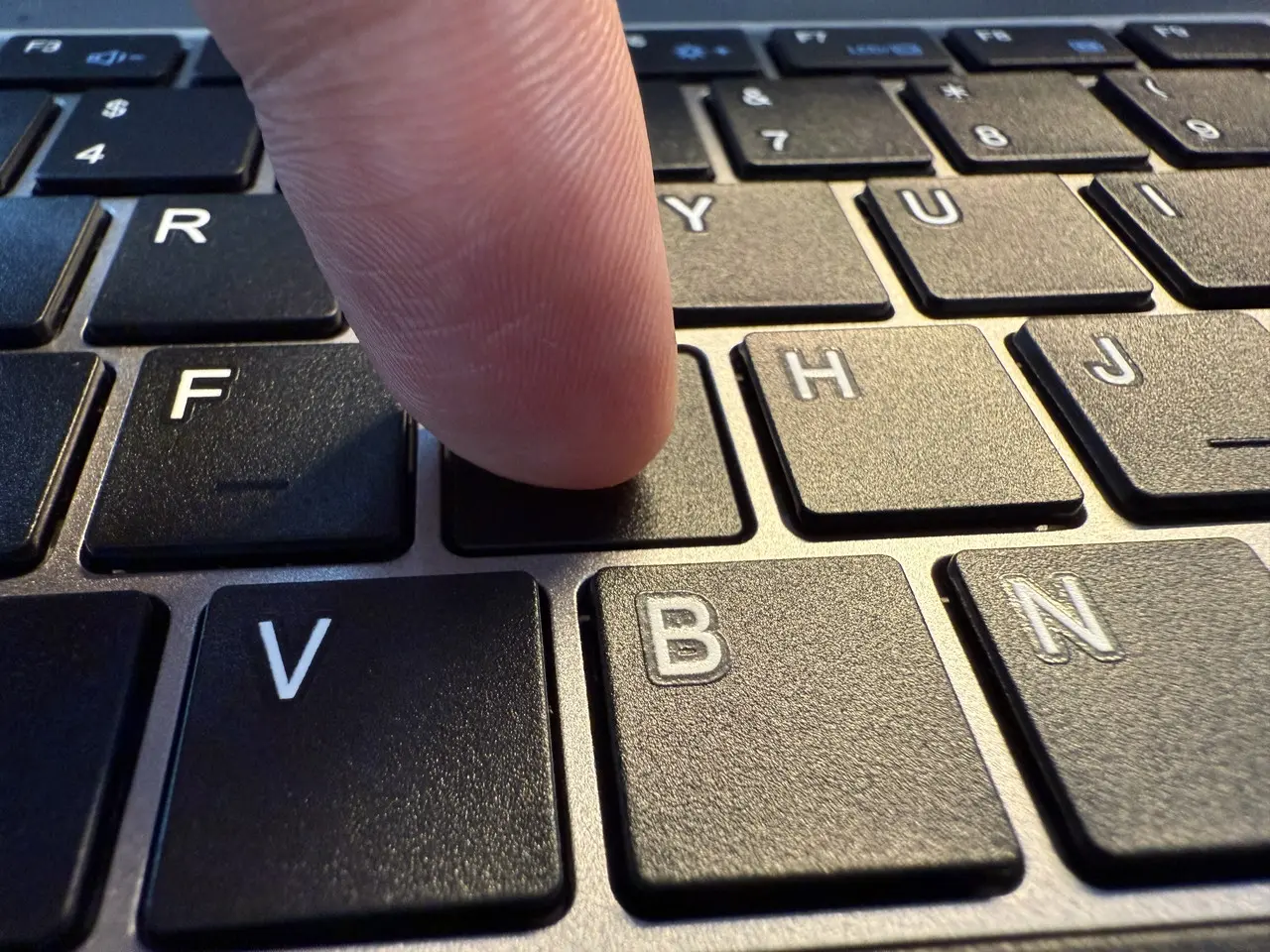 ACEMAGIC TX15のキーボードは全体的にタイピングしやすい設計で、各キーがやや大きめに作られているため、打鍵ミスが少なく快適に入力できた。キーの押下圧は軽めで、ストロークも浅めなため、長時間のタイピングでも指が疲れにくい。