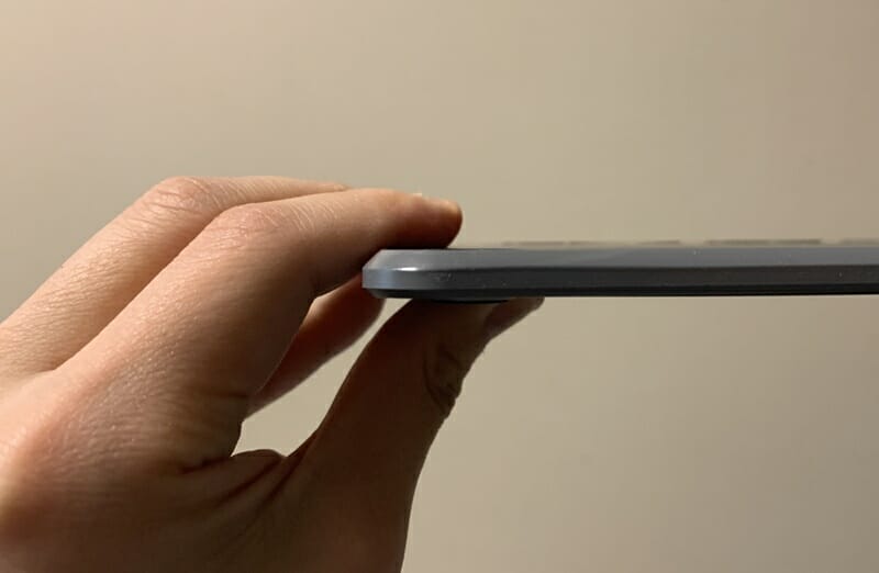 ▼厚みは0.9ミリほどの薄さ。カバンなどに入れて持ち運んでも支障にはならないだろう。
