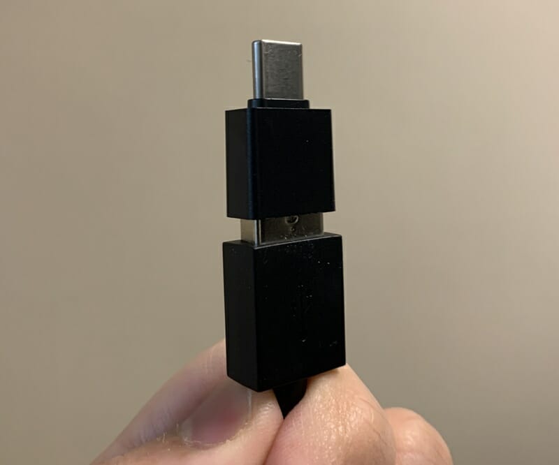 ▼USB OTGが付属しており、Android端末への接続にも対応。