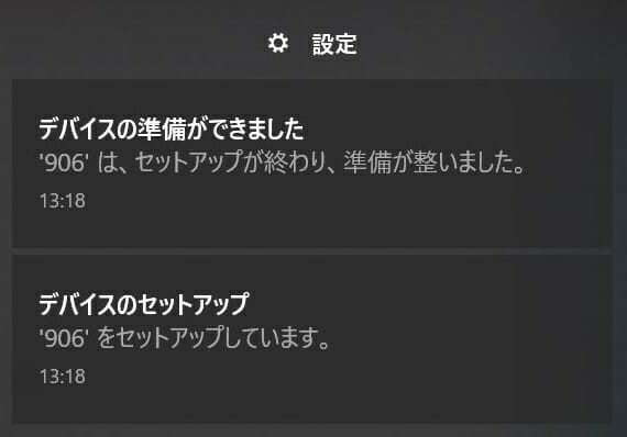 ▼すると自動的にデバイスのセットアップが完了する。