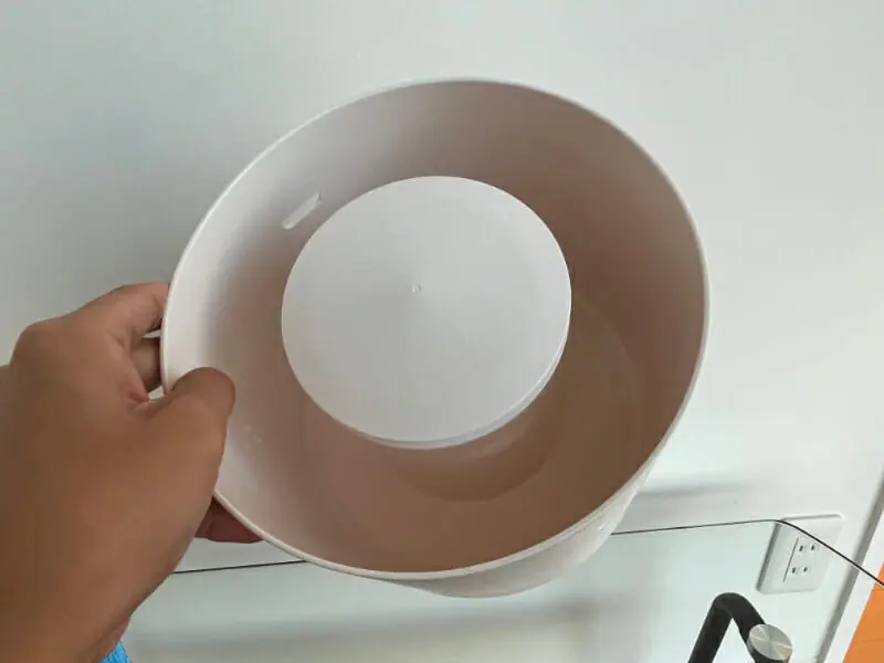このスポンジを挿入した状態の水タンクにフタをはめ、空気清浄機本体の上部へ取り付ける。