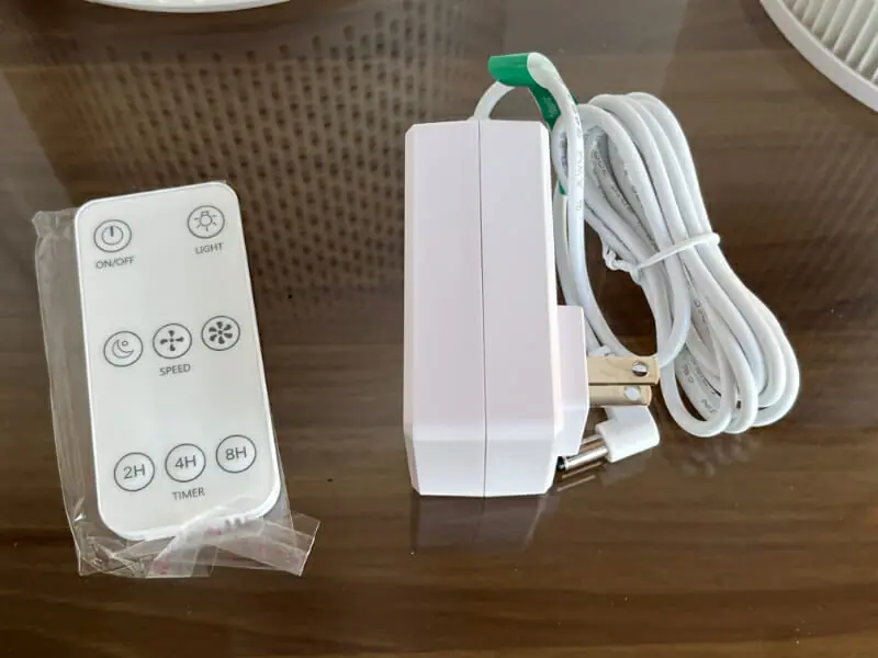 ▼底部のフタを取り外すと、フィルター、リモコン、電源コードが入っている。