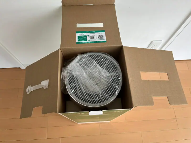 ▼空気清浄機の利用を開始する前に、必ず付属品を取り出しておこう。