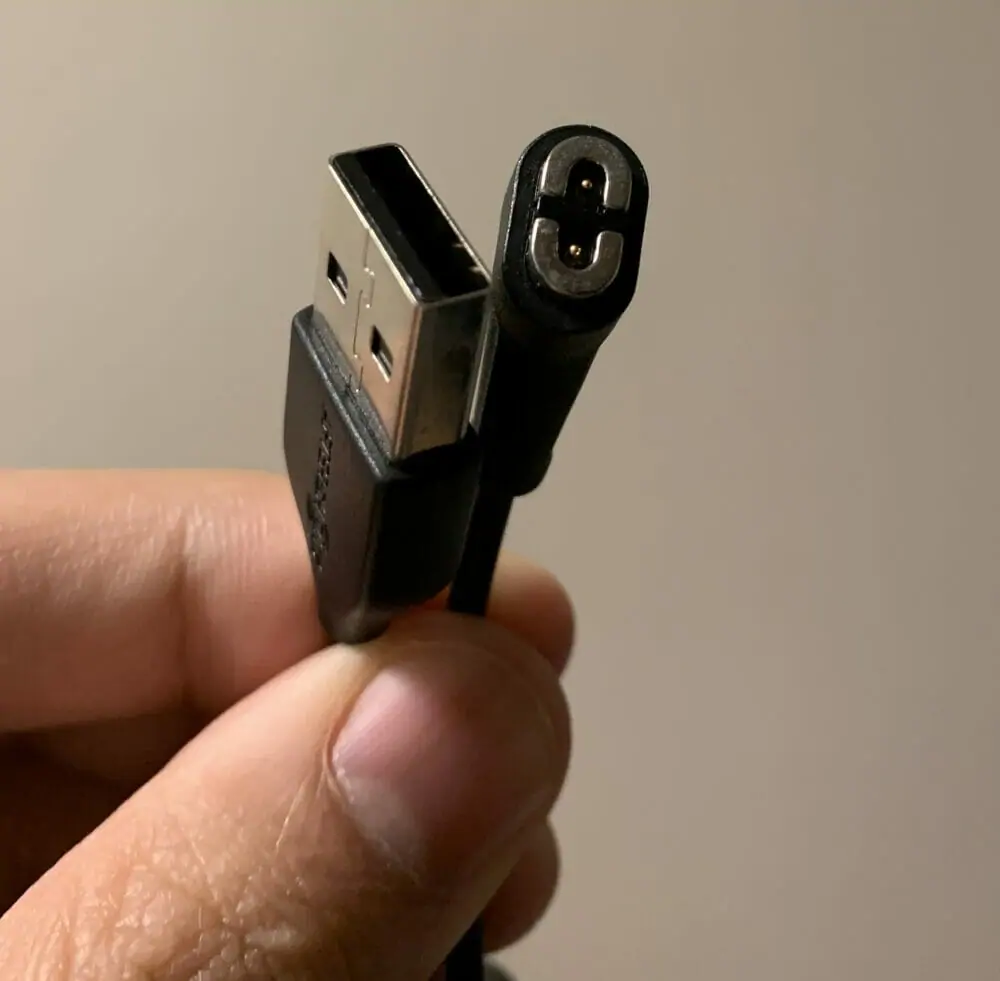 ▼充電ポートの接続部はマグネット吸着式となっており、汗や水滴などが付着しても壊れづらい設計となっている。