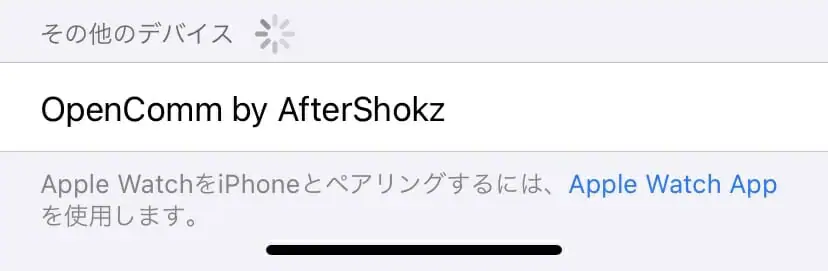 この状態でペアリングスタンバイとなっており、デバイス側に『OpenComm by AfterShokz』の名前で表示される。