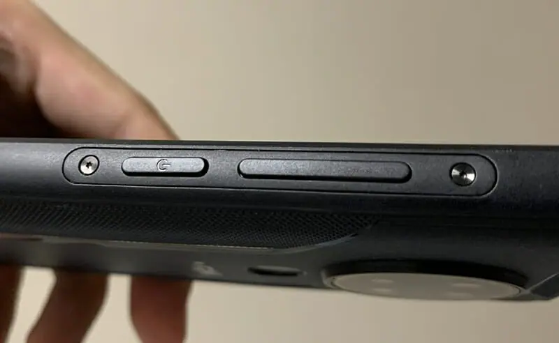 ▼右側面には電源ボタンおよび音量調節ボタンが用意。