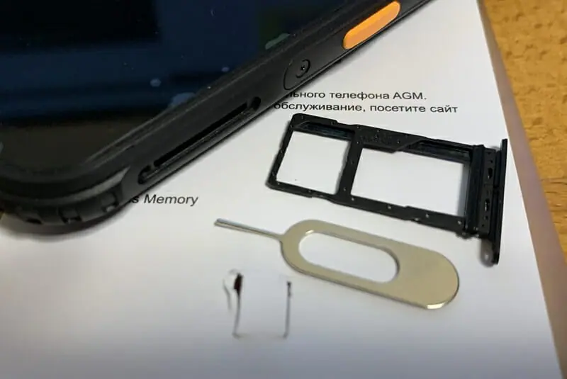 ▼付属のピンを用いることでスロットを開き、マイクロSDカードやSIMカードの挿入が可能となる。