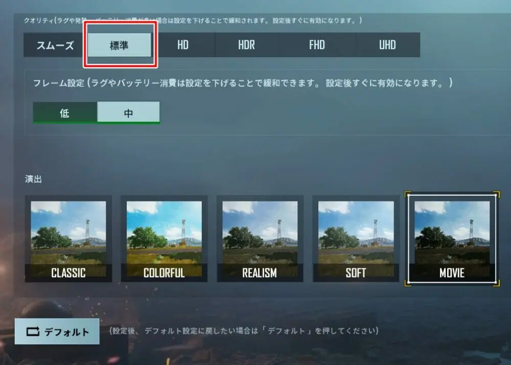 まずグラフィッククオリティに関しては『標準』までしか選択できなかった。
