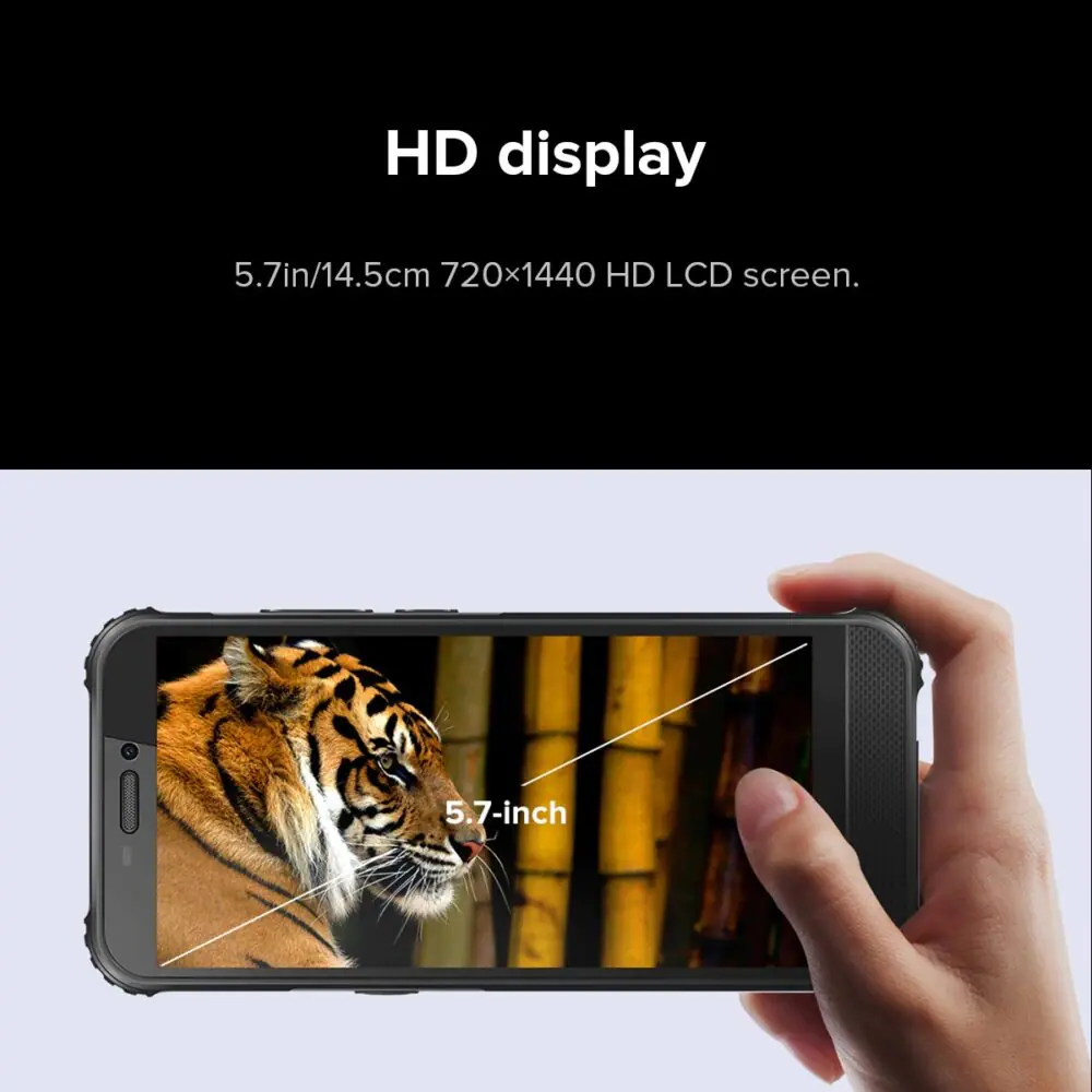 ディスプレイサイズは1,440 x 720に対応しており、カラフルで美しい映像を楽しむことができる。筐体サイズは通常タイプのスマホよりややゴツくて大きめではあるが、十分持ち運びに適したコンパクトさだ。