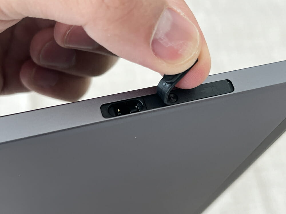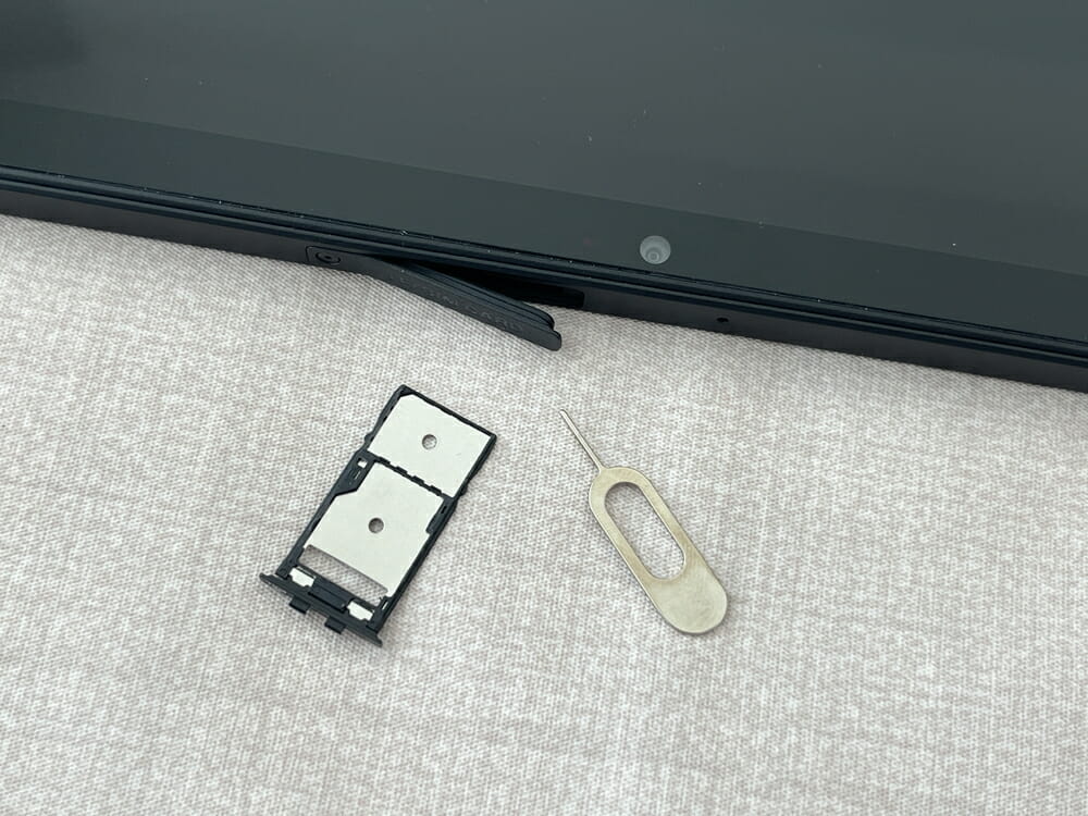 付属のピンを用いてスロットを開き、nanoSIMカードもしくはマイクロSDカードの挿入が可能だ。