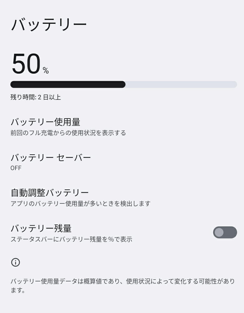 実際に使用してみたところ、動画視聴、ウェブブラウジング、少々のゲームアプリ起動などを日中に行ってみたが、3日間(計15時間ほど)は充電なしでも利用し続けることが可能であった。