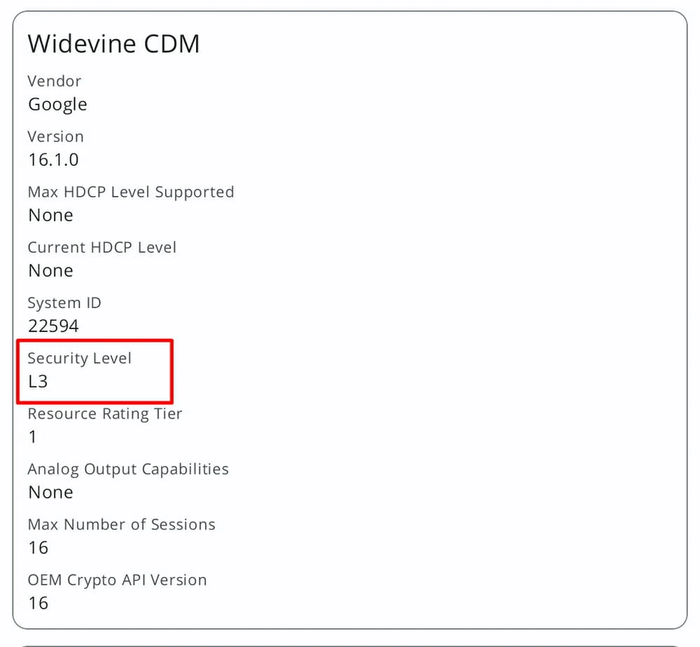 | Widevine | L3 |