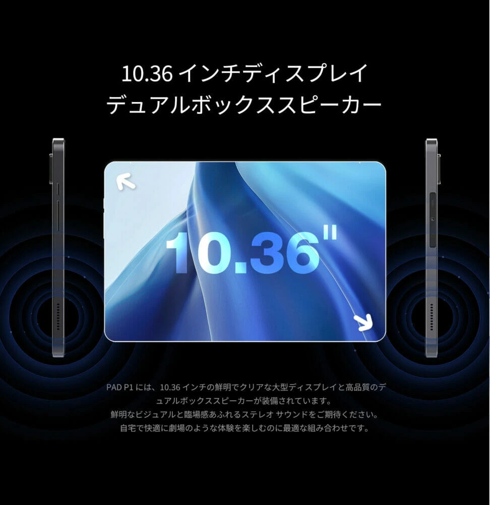 10.36インチディスプレイは2000×1200(FHD+)解像度に対応しており、美しく滑らかな映像を楽しむことが出来る。