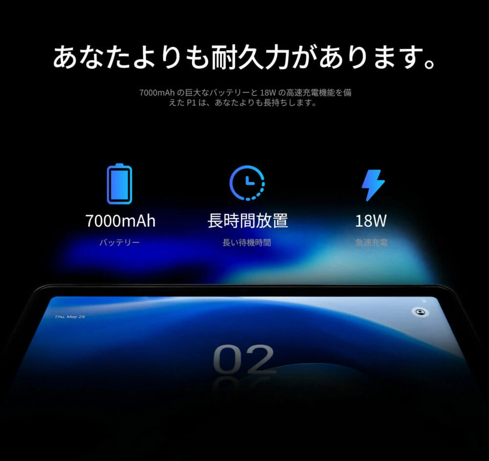 | バッテリー容量 | 7,000mAh(18W急速充電対応) |