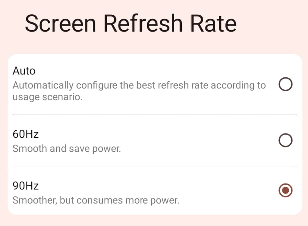▼設定より最高90Hzのリフレッシュレートに変更可能。滑らかな描画を楽しめる。
