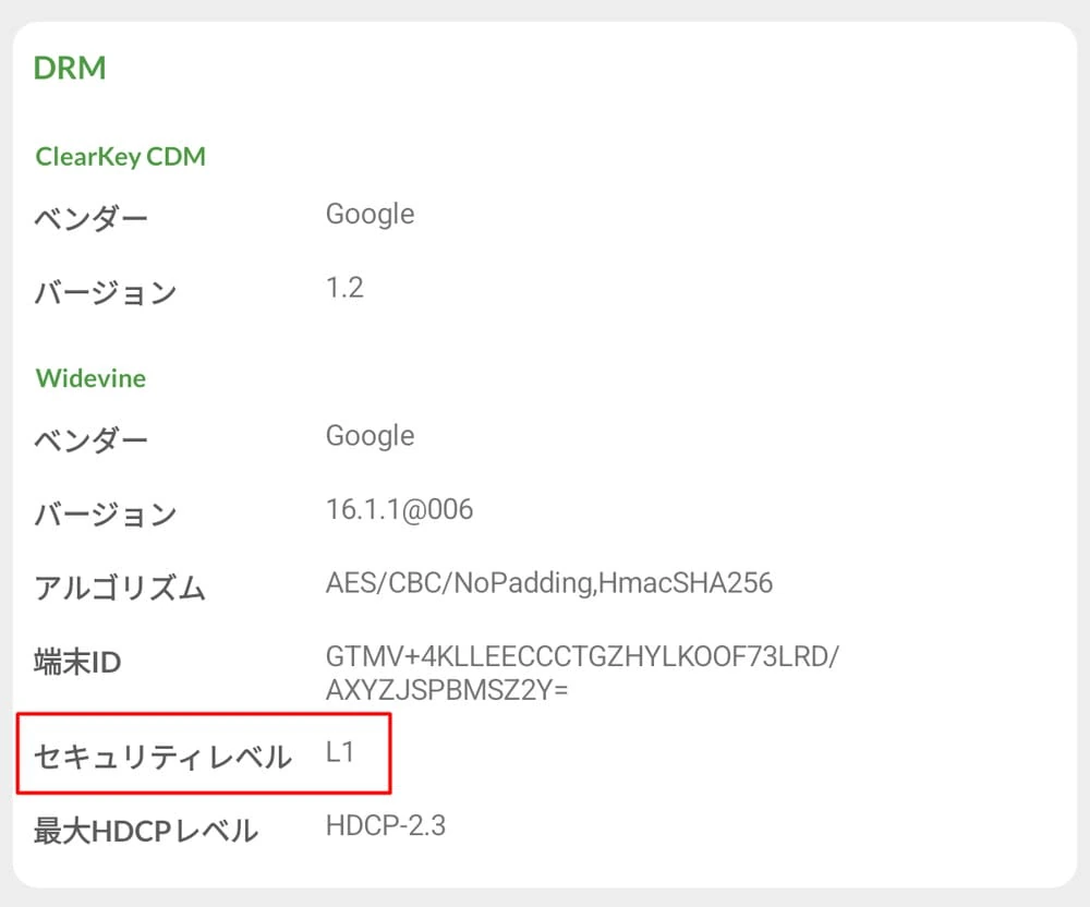 なお、WidevineはL1サポートとなっており、HuluやAmazonプライムビデオなどの配信サービスにおいて、高画質設定の映像を楽しむことが可能だ。