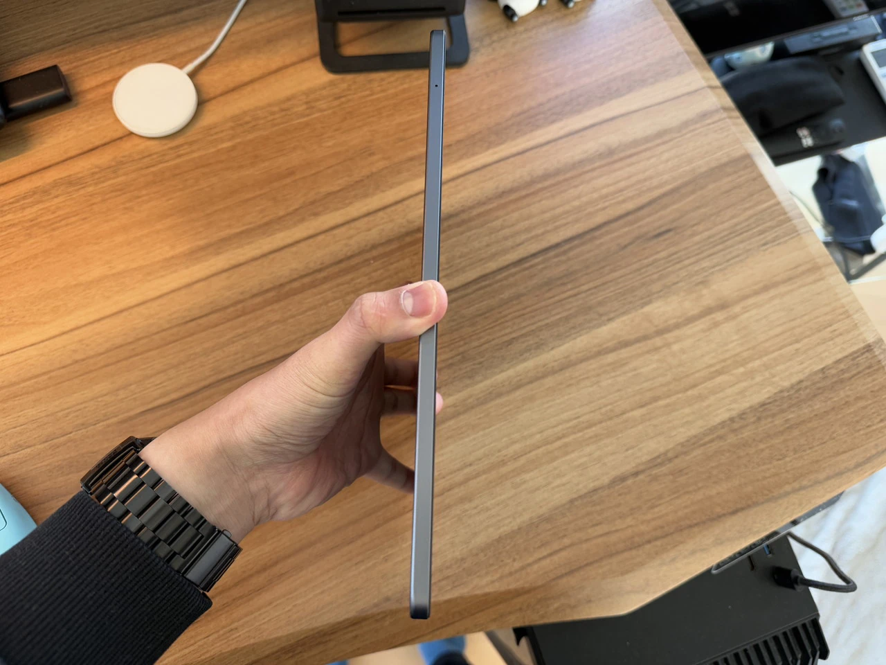 筐体は薄型かつスタイリッシュな見た目で、本体重量は約502gとややズッシリ感はあるものの、長時間持ち続けてもそこまで腕が疲れることは無い。厚みは7.45mmとやや薄いため、カバンなどに入れて持ち運ぶ用途にも適している。